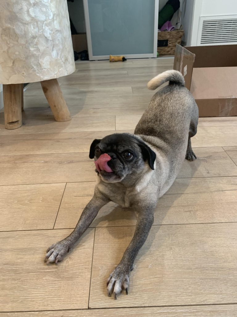 I interviewed Balogh who lives with her husband as empty nester, her kids have gone off to college, and her other dog Cookie that is starting to get a little older. She works a very busy full time job as a lawyer and her husband is a chef, so he’s home a little more often than she is. They recently got their new dog, a pug named Skinny P, and I thought she would be the perfect person to ask the following questions regarding adopting a dog during COVID: